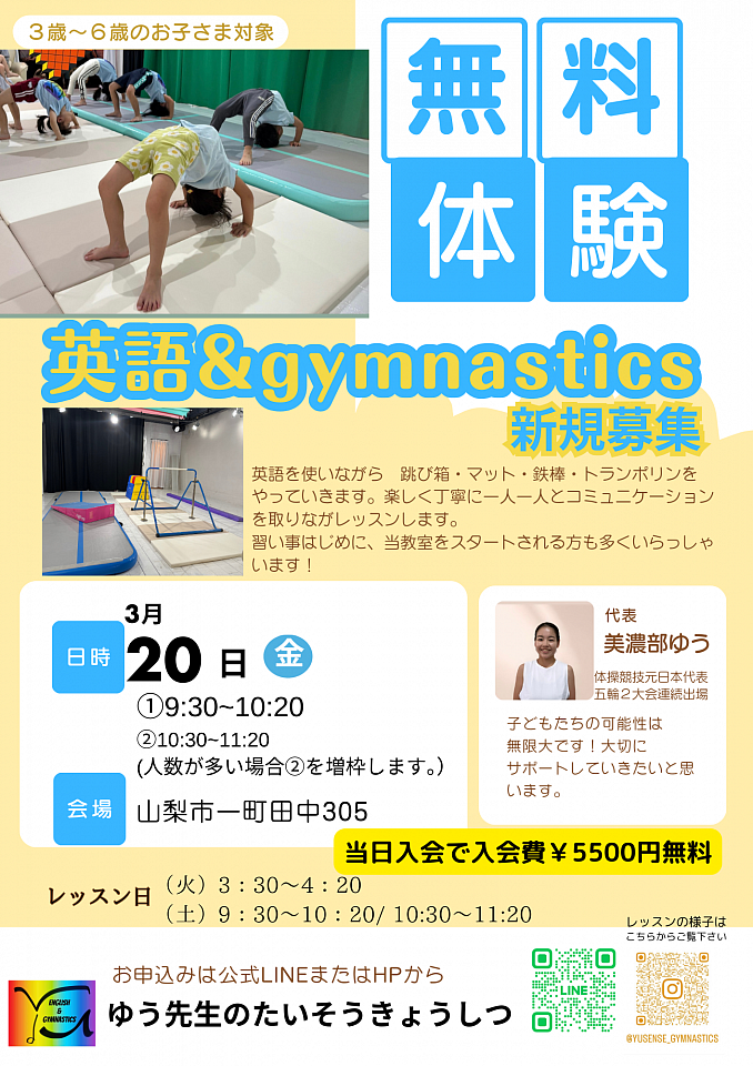 [英語&Gymnastics]では4月からのお友達を募集致します。